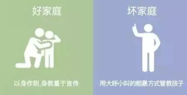 用大呼小叫的粗暴方式管教孩子。坏的家庭里父母通常霸道强势,说一不二。对孩子要求很多条条框框自己却从做不到。