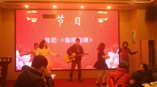 年会好玩又开心的环节当属节目表演和游戏。说拉弹唱跳样样有,潮流和经典轮番上演。舞蹈“咖喱咖喱”、“大海航行靠舵手”等节目精彩纷呈,赢得台下连连欢呼声和掌声。有上百年的历史民间艺术快板带大家重温经典艺术,在众多节目纷至沓来下,吉他弹唱“成都”则给人一种清新的感觉。而最赚人眼球的莫过于双人舞“三步踩”,节奏轻快,舞姿优美,台下尖叫声、掌声把气氛直逼高潮。在节目表演间还穿插了许多的游戏,如“快乐传真”、“筷子运乒乓球”等,大家参与的热情极高,其中也不乏小朋友。最后,带着最美好的祝福,银海家政全体人员合唱《明天会更好》。